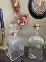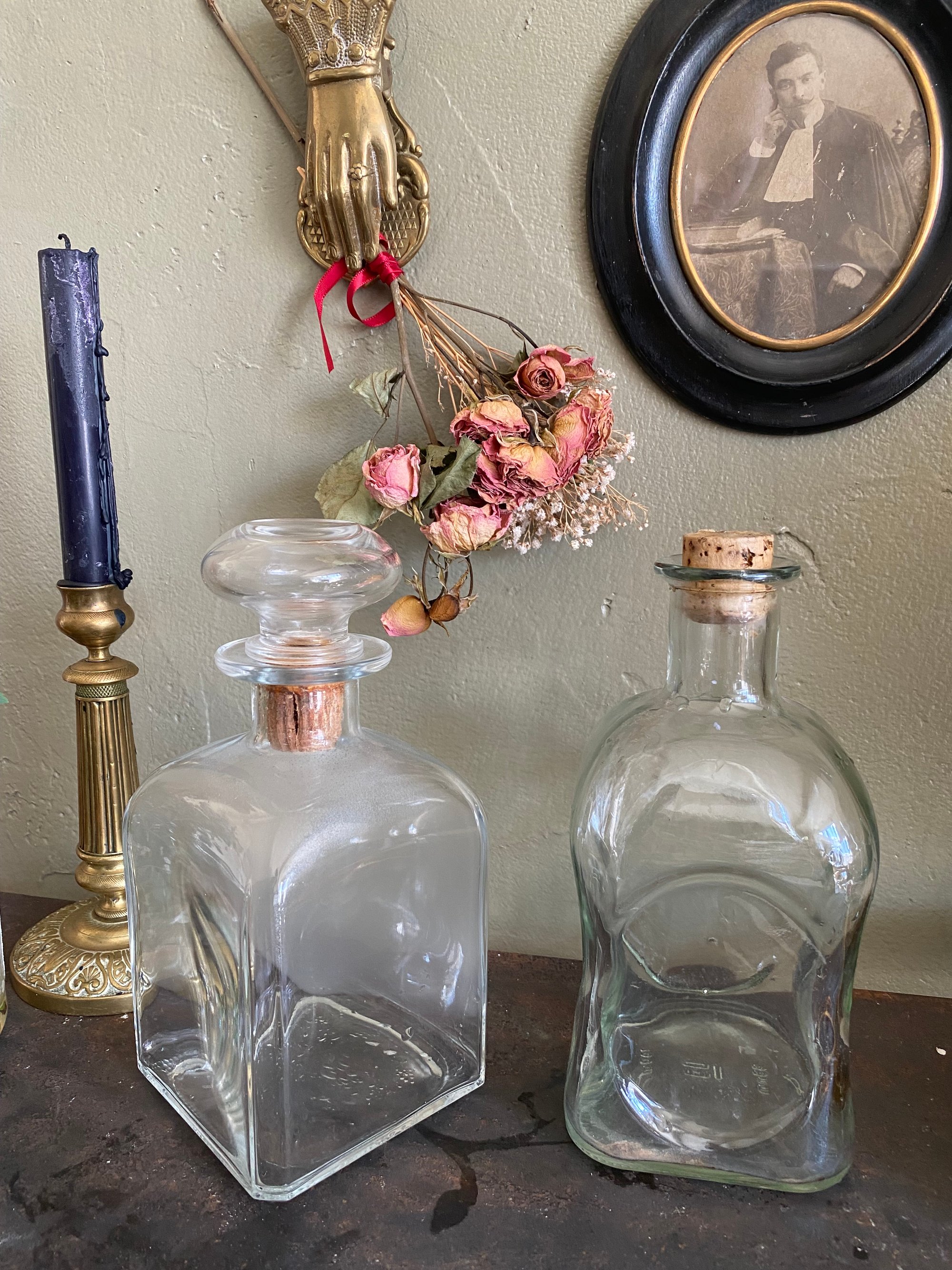 2 Bouteilles d’alcool anciennes, en verre soufflées. 20 x9 cm
