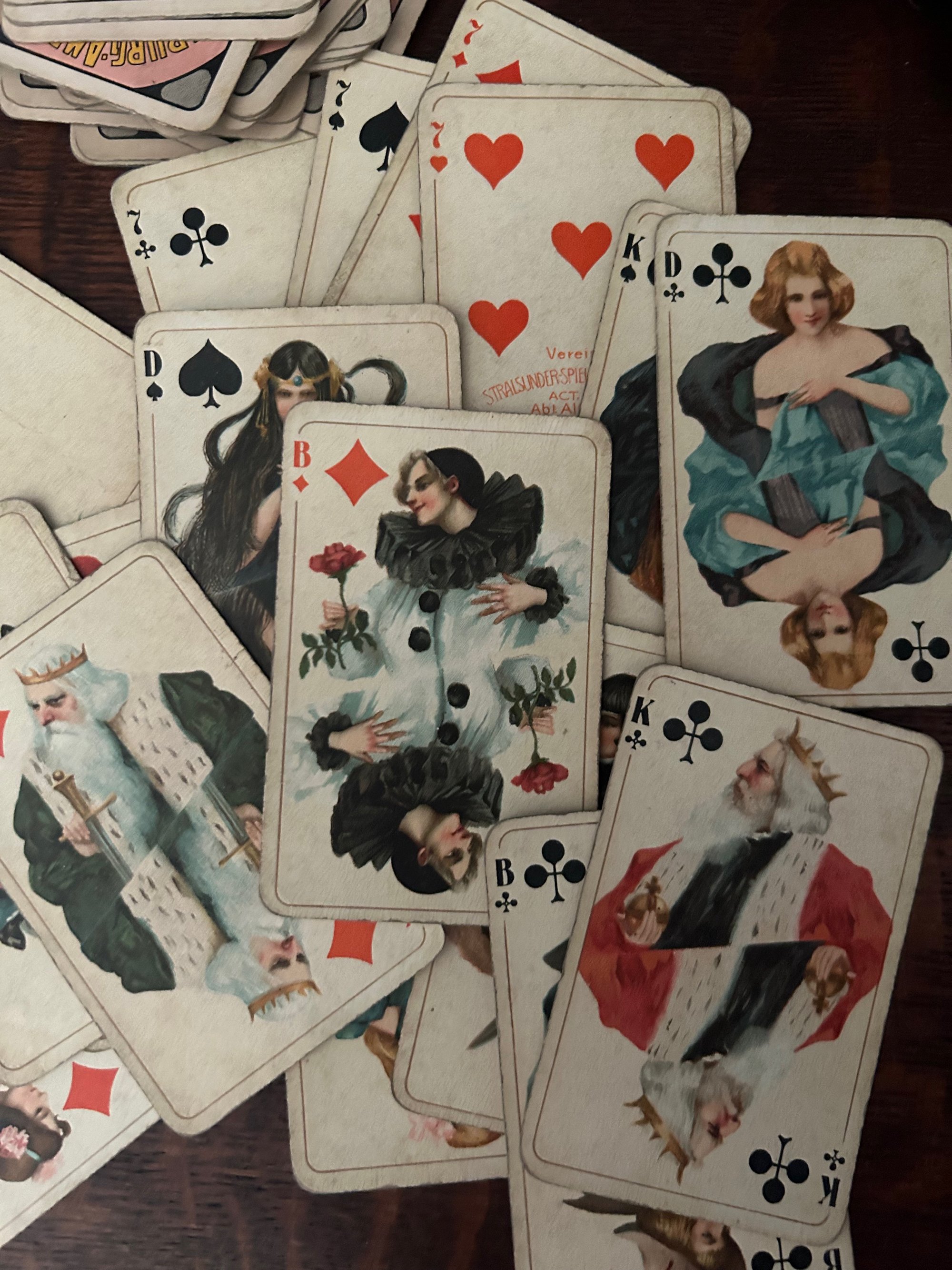 Ancien jeu de 52 cartes, allemand. Art Nouveau, Tamponné sur l’as de coeur, (1871-1918)