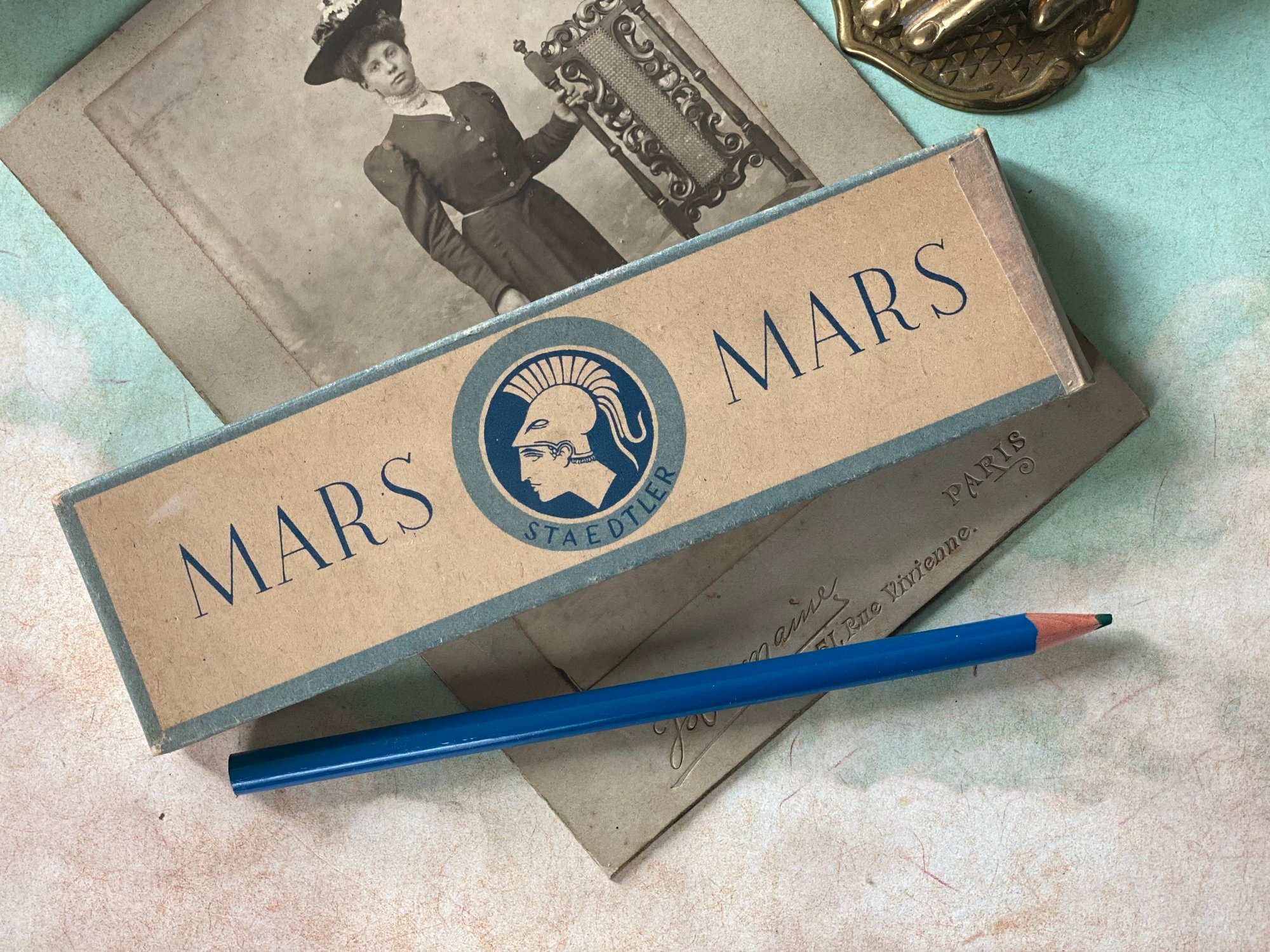Ancienne boîte à crayon Mars, 12 crayons à mines vertes 1900
