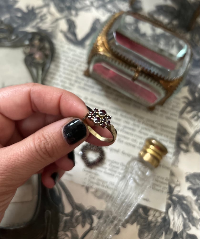Bague en vermeil et 10 grenats, début 1900, poinçonnée, taille 54-55