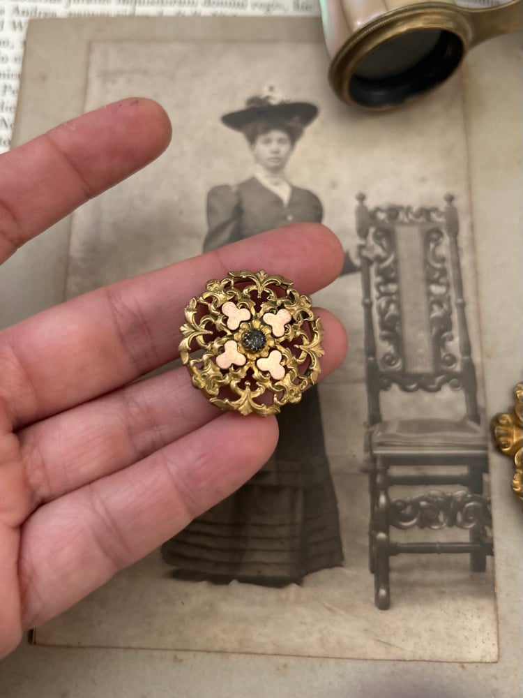 Broche en pomponne, cuivre et zircon, du XIXème siècle