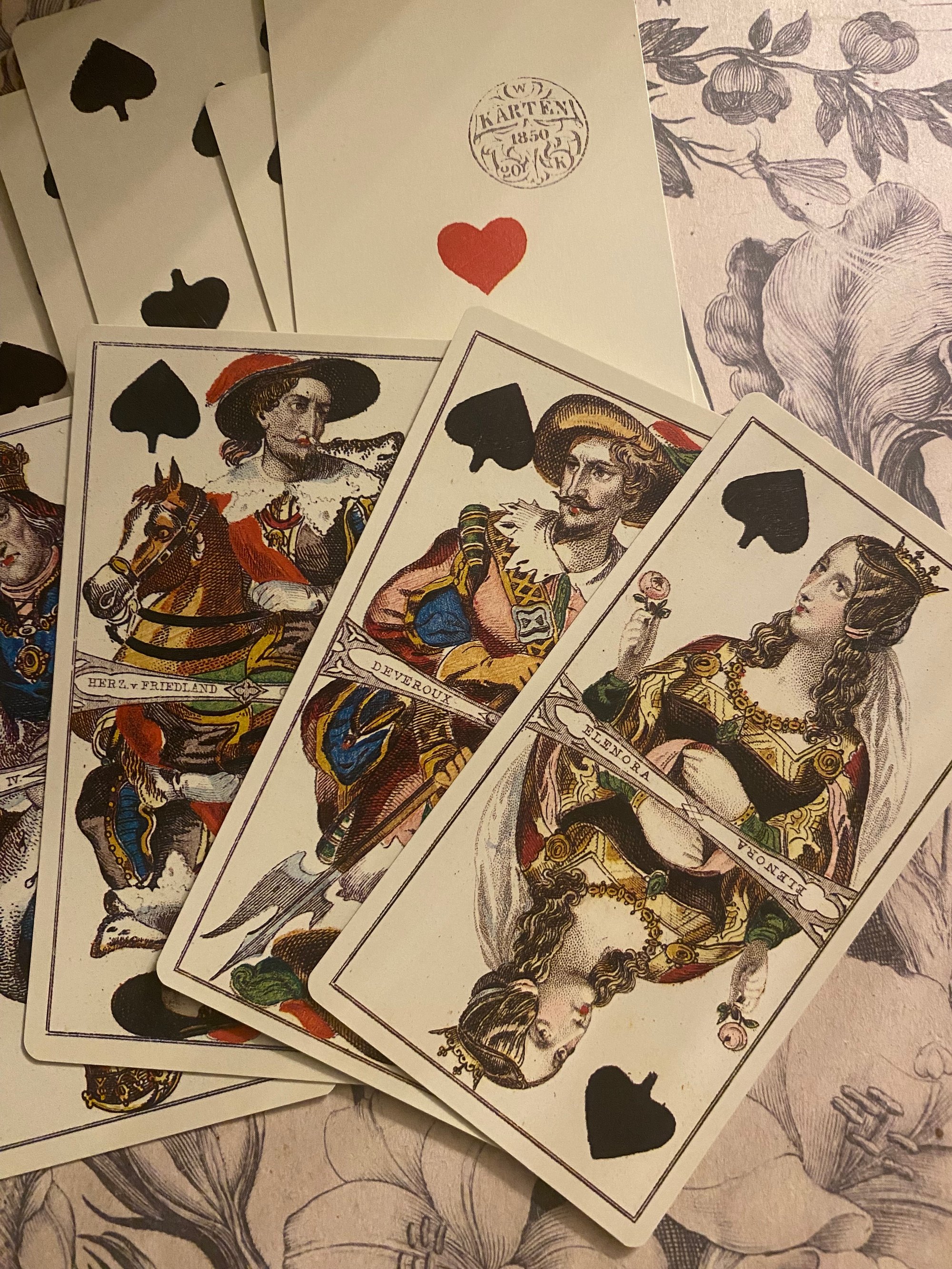 Puis les cœurs et carreaux as 1-2-3 et 4