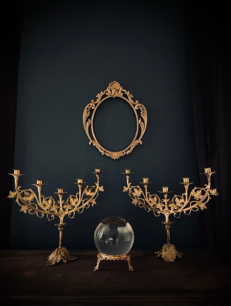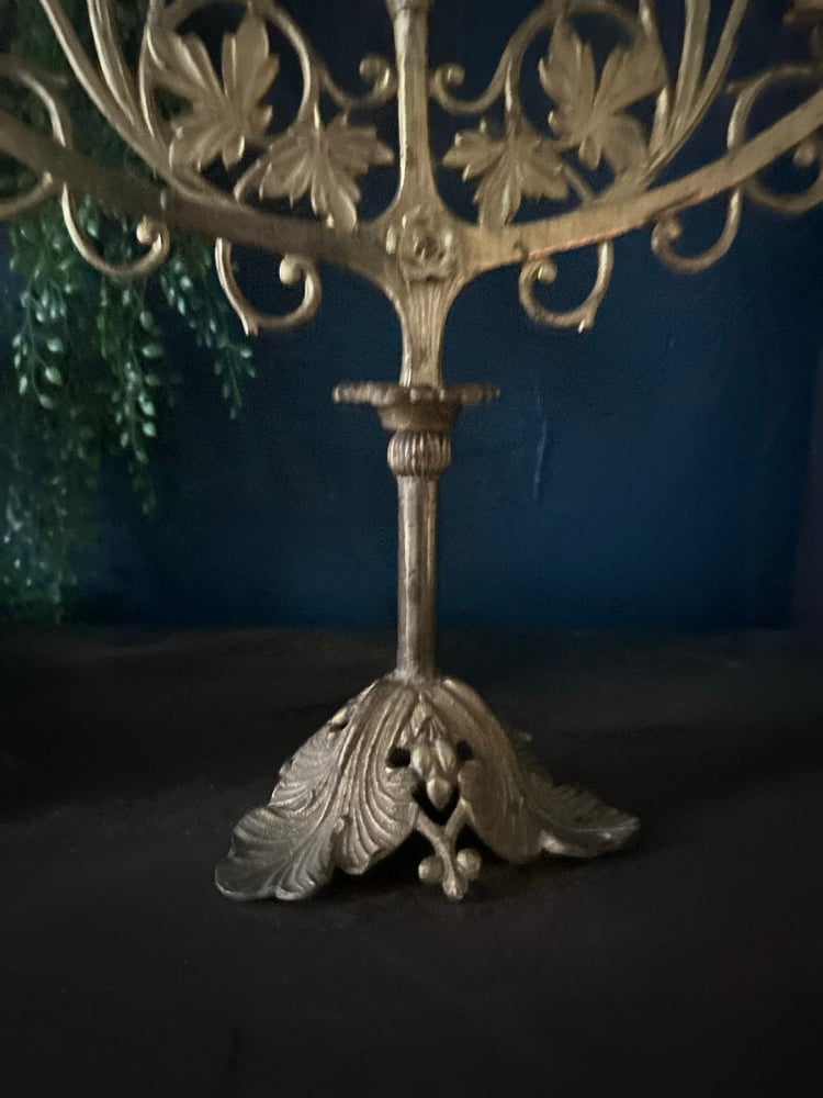 Très grand candélabre d’église à cinq feux, en laiton massif