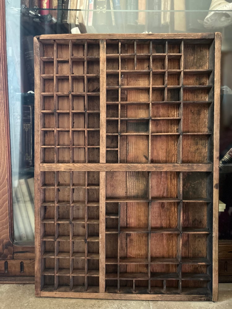 Grand casier d'imprimeur du XIXème s. bois massif, 65x44 cm