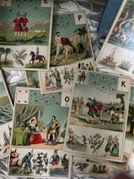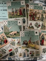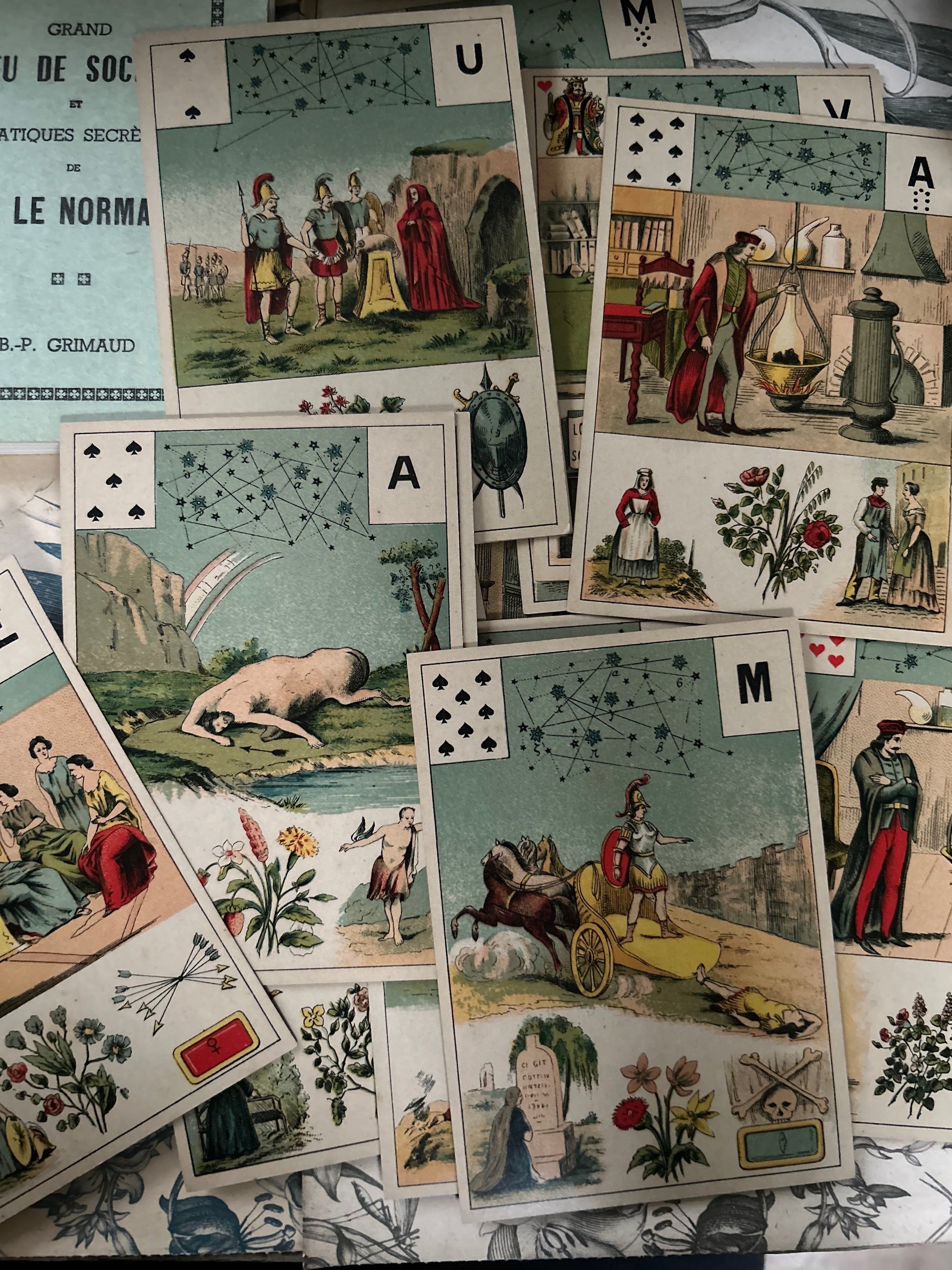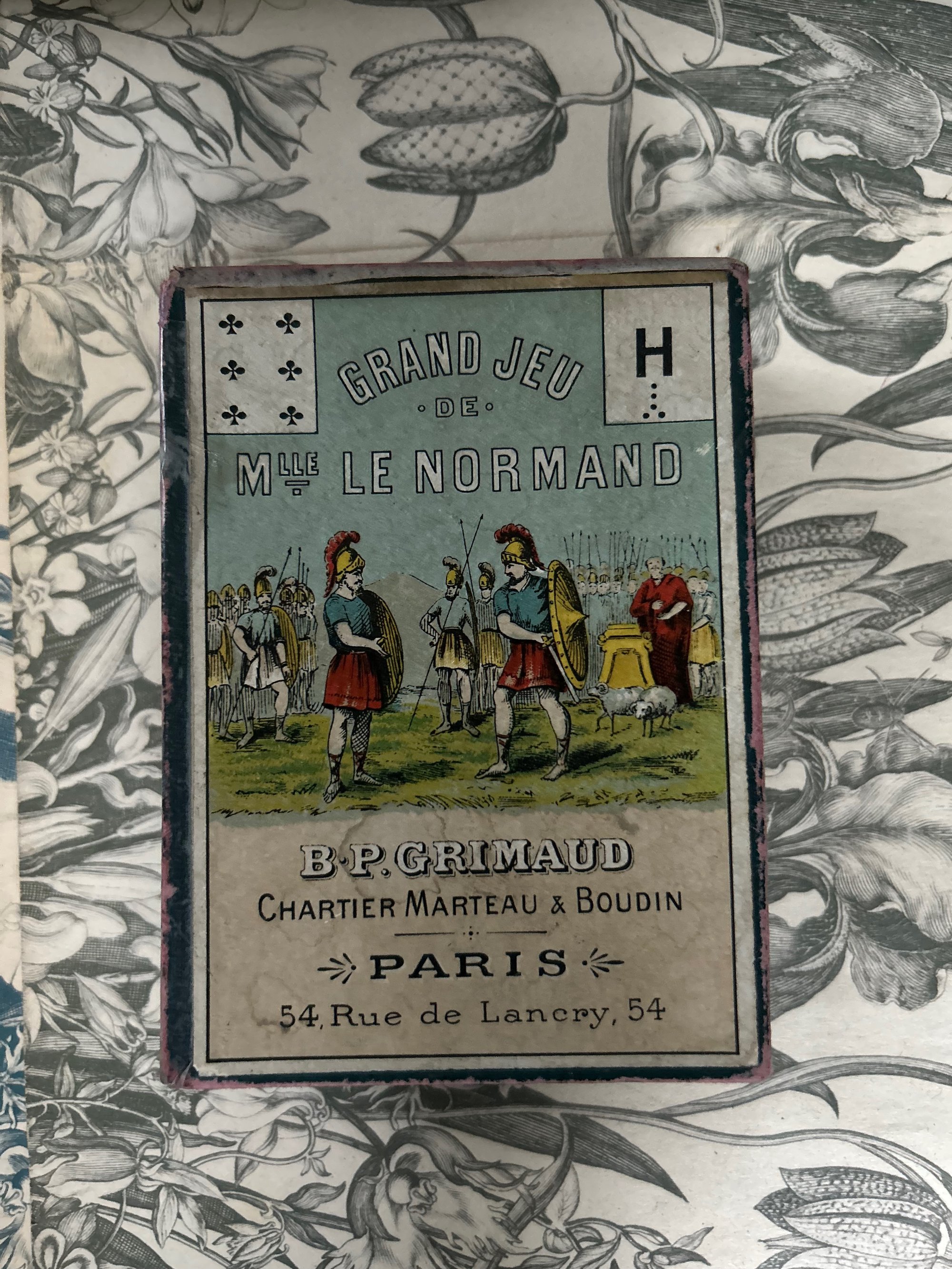 Grand jeu de Melle Lenormand, 52 cartes, complet, de 1890!! avec sa boite bleue, Rare!