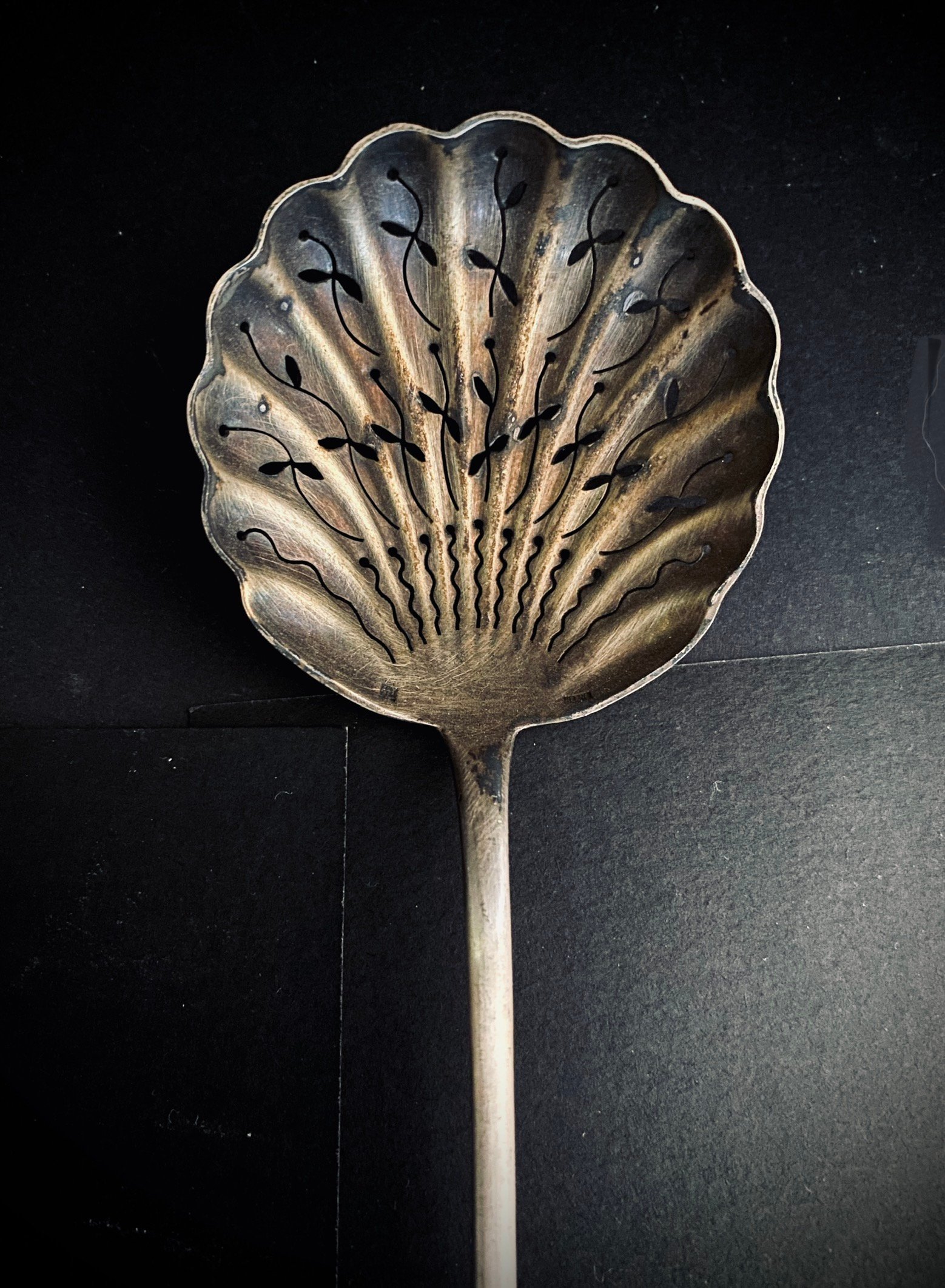 Grande cuillère à hors d’œuvres, ajourée, plaqué argenté début XXème