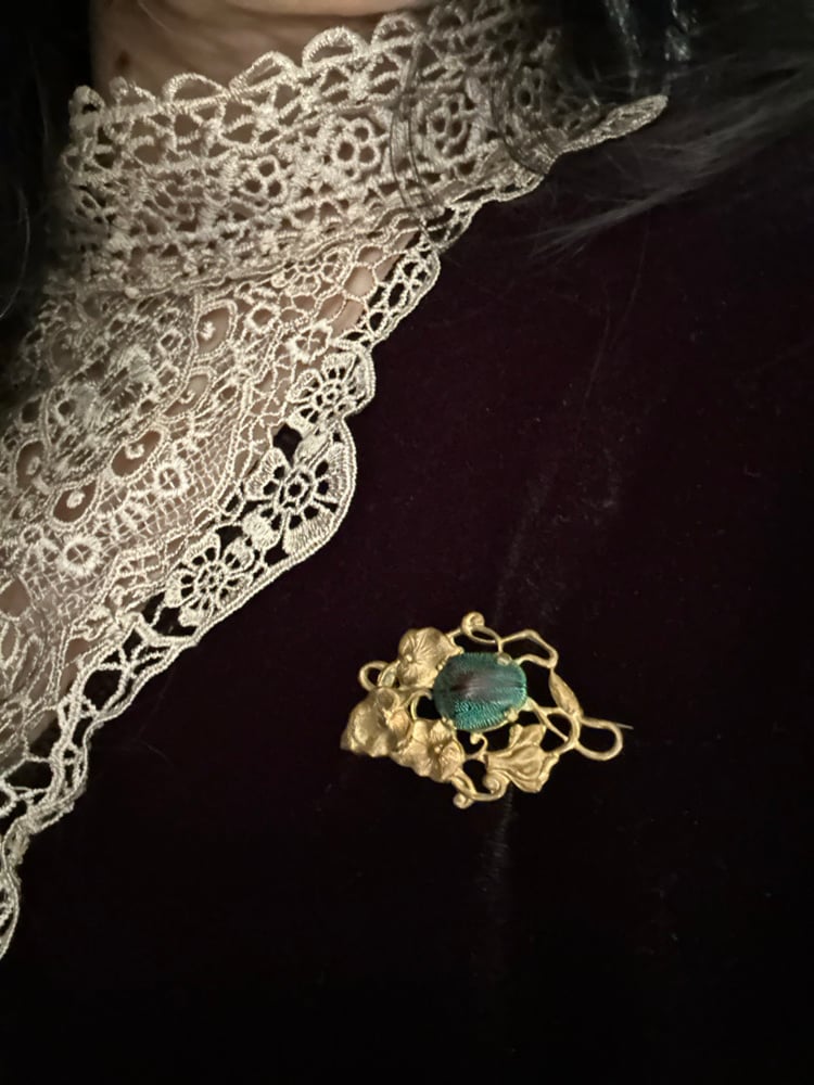 Incroyable broche victorienne avec un véritable scarabée naturalisé, Art Nouveau. Très rare!!