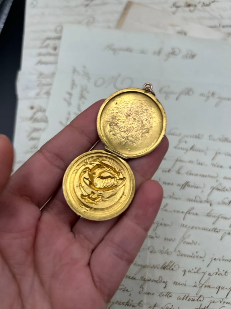 Incroyable pendentif ouvrant, porte-photo, dragon, en cuivre plaqué or, fin du XIXème siècle!