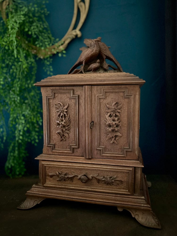 Incroyable petit meuble à bijoux, en bois sculpté, dite Forêt Noire, fin du 19ème s.