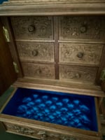 Tout les tiroirs possèdent une soie bleu capitonnée en parfait état!