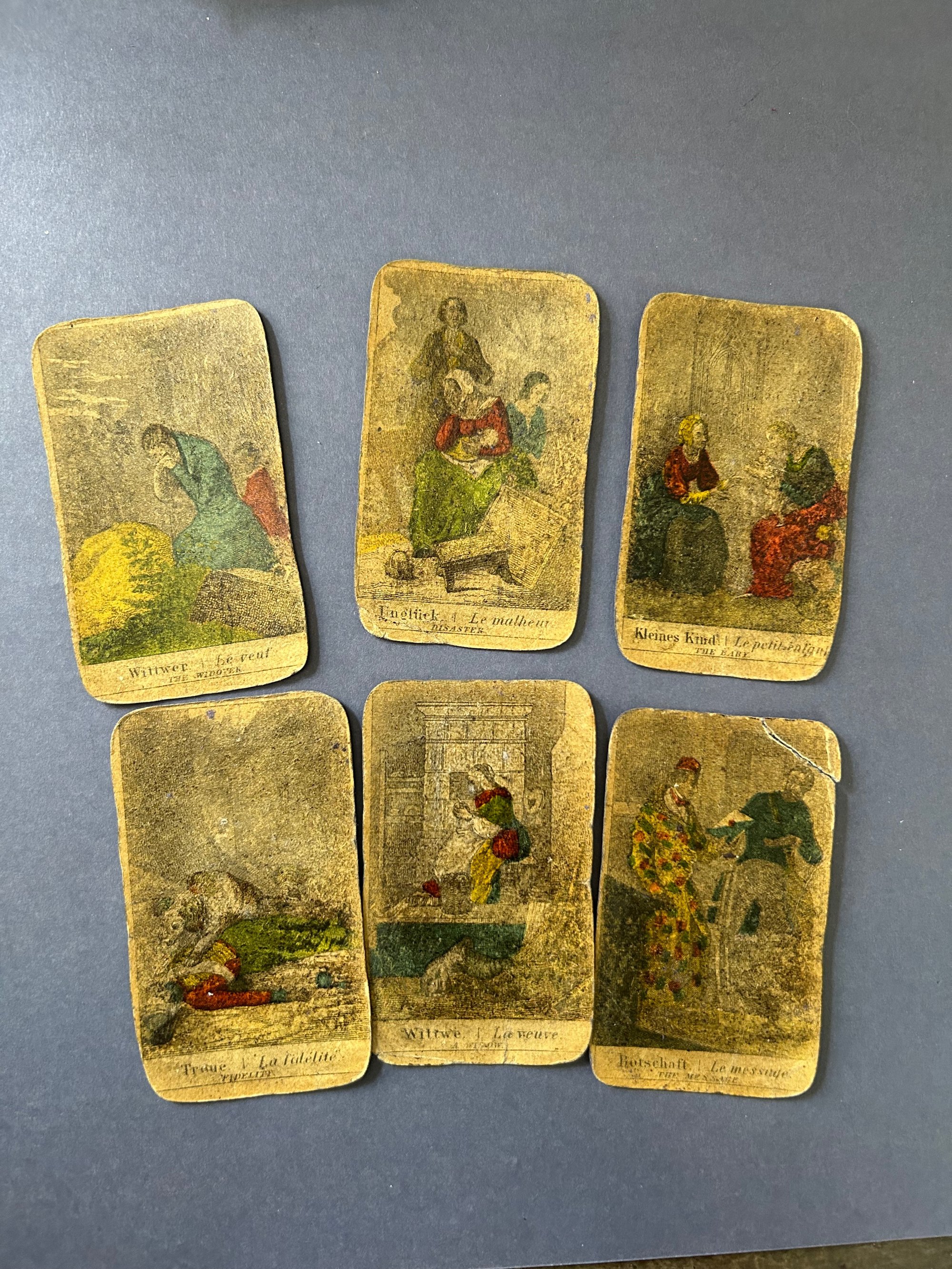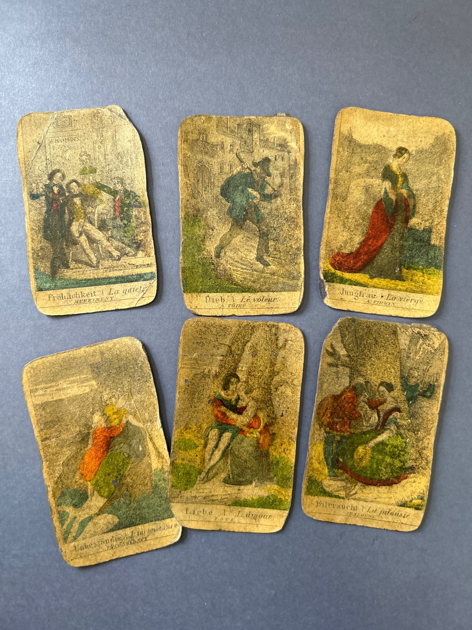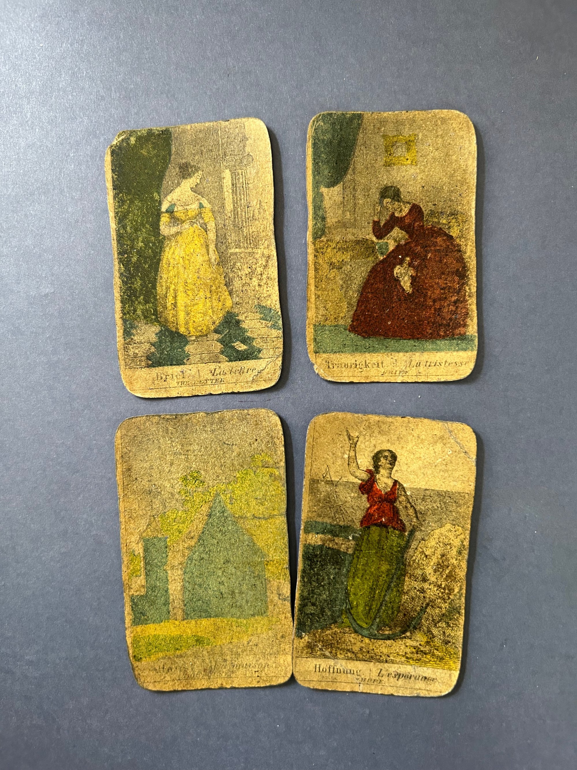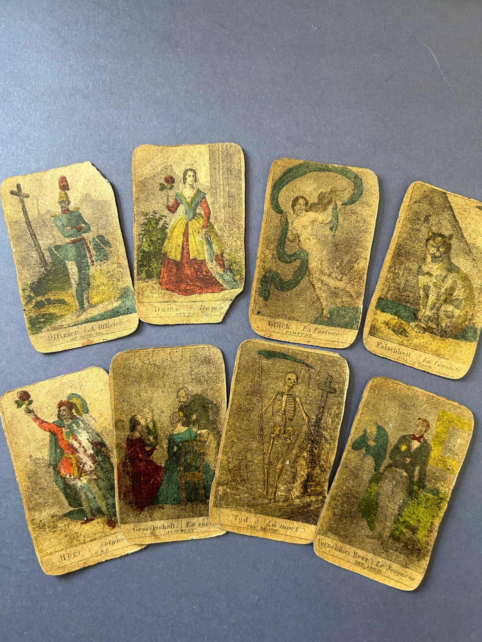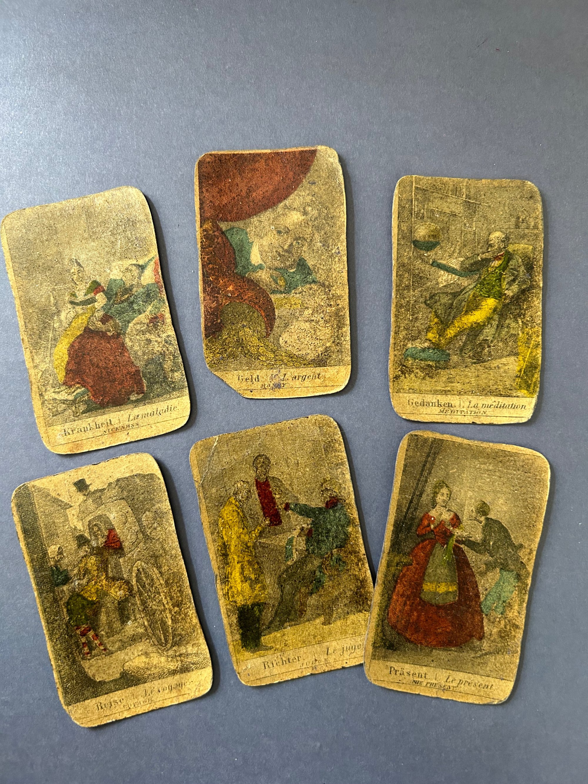 Jeu de cartes rare, Sibylle die Wahrsagende, 1820-30, par le cartier Johan Conrad Jegel. 30/32.