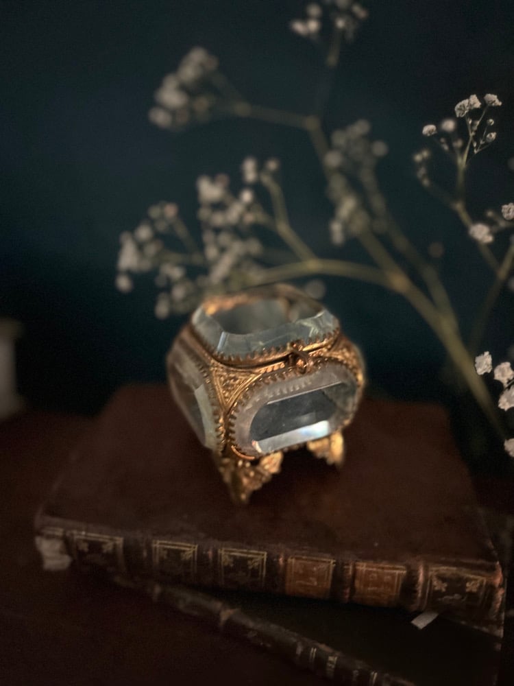 Jolie boîte à bijoux en verre biseauté et laiton de type Napoleon III