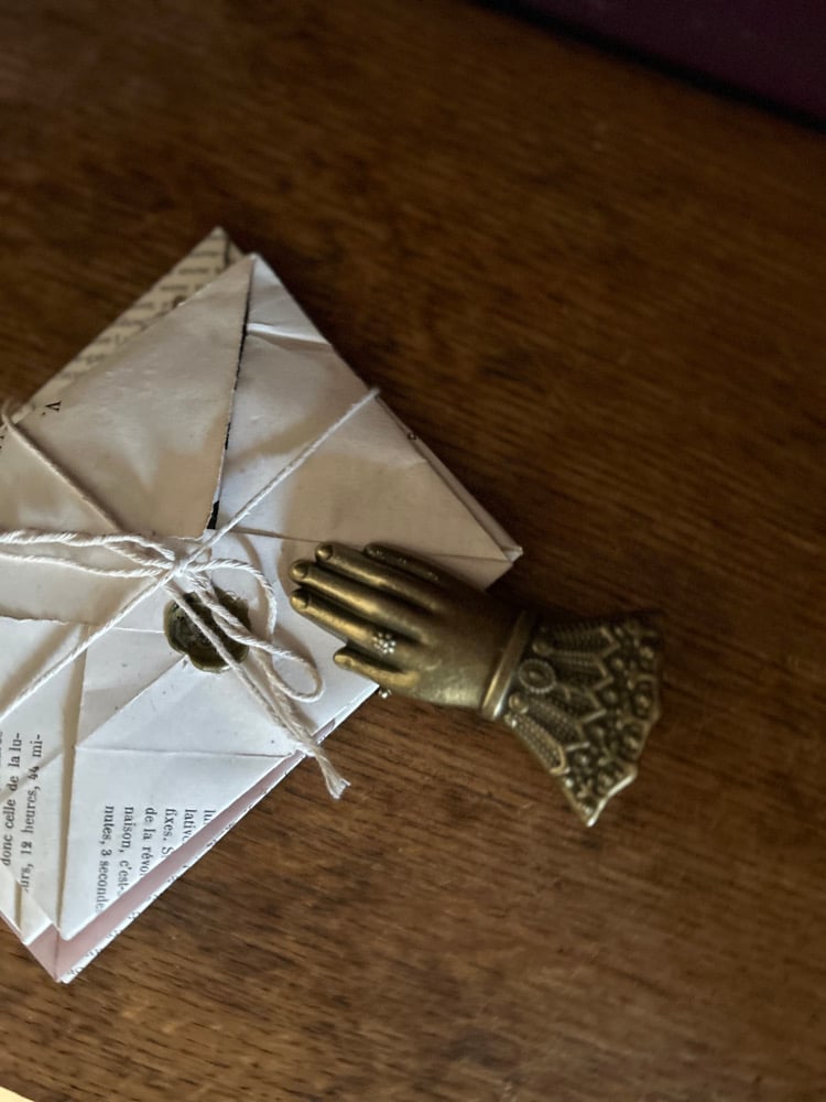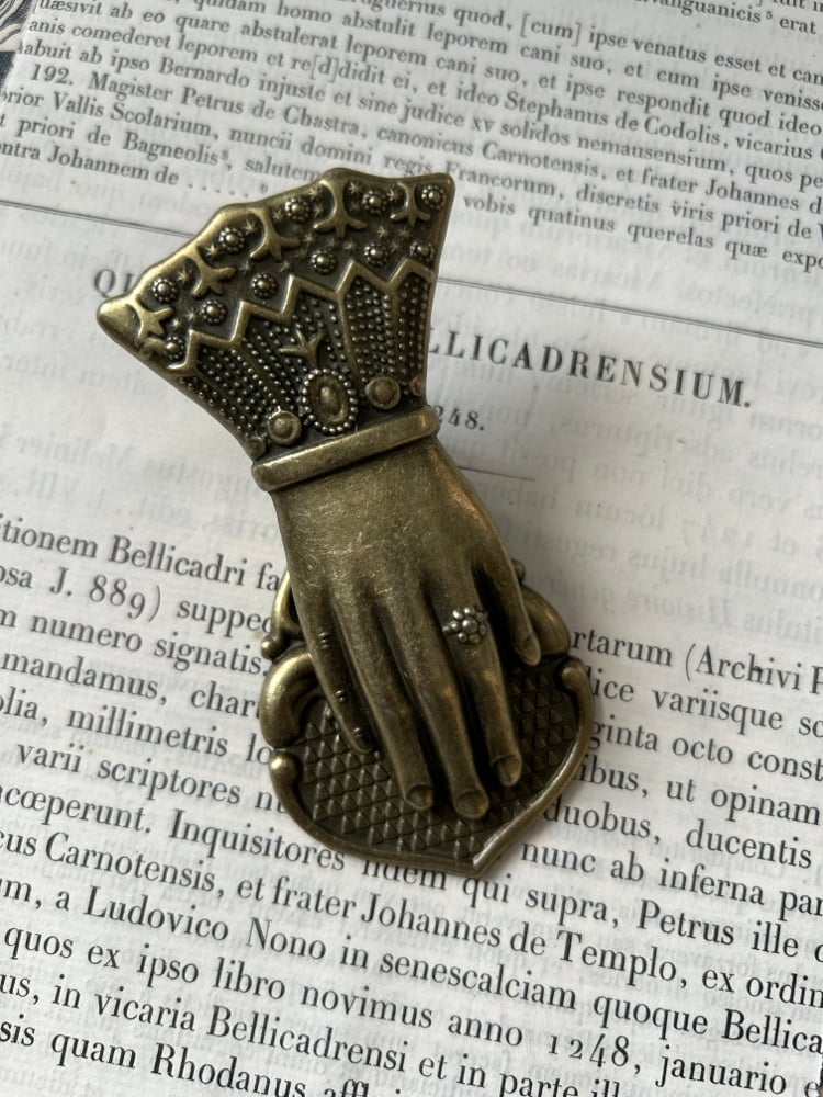 Jolie pince courrier, main victorienne en laiton massif, XIXème siècle