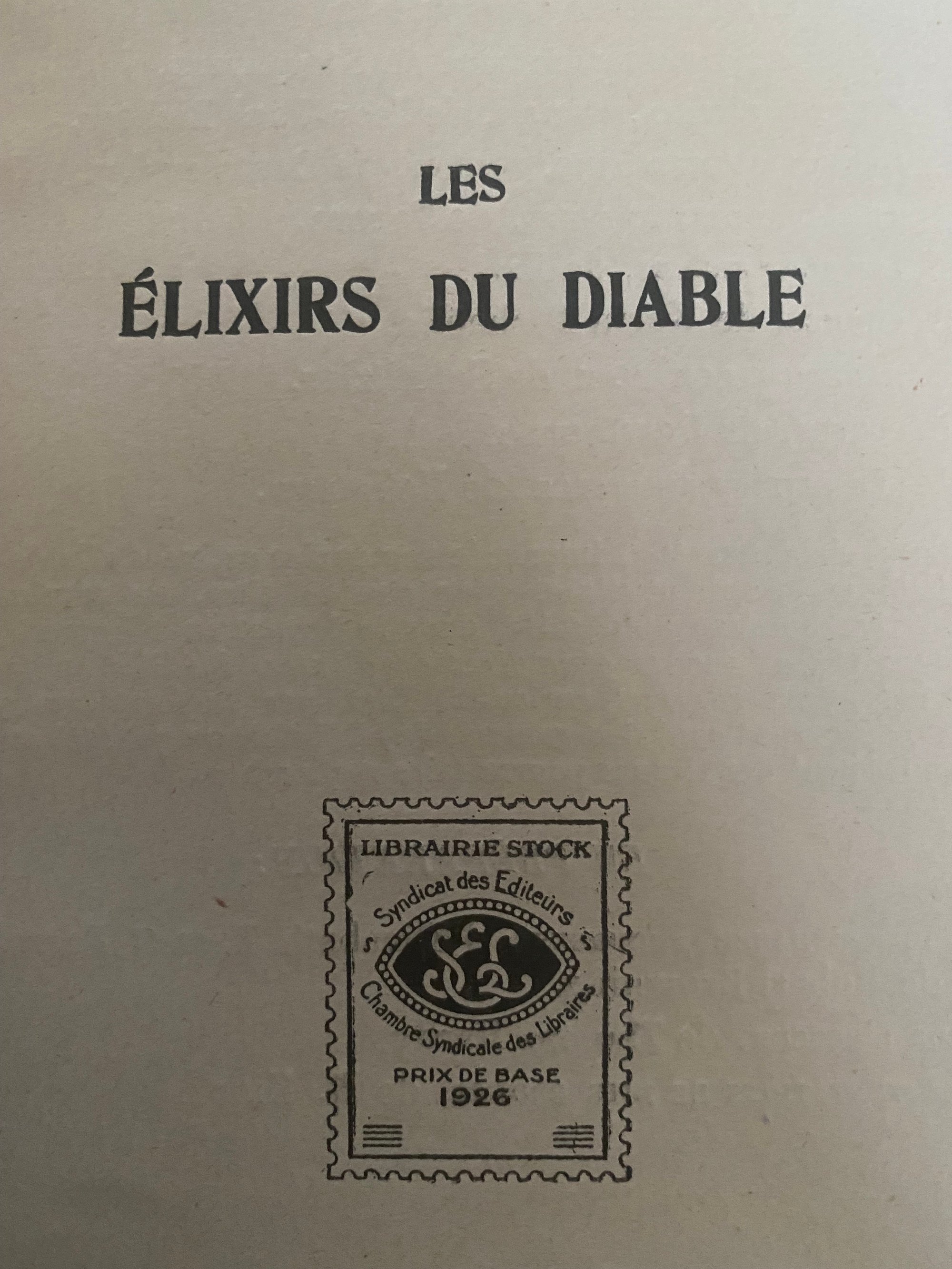Les élixirs du diable, Hoffman, 1926, ex numéroté.