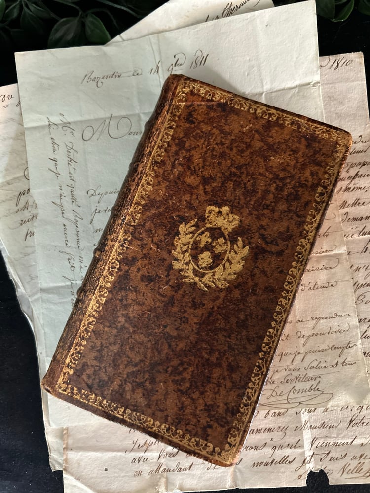 Magnifique livre à secret, un objet rare réalisé au XIXème siècle sur un livre ancien du 18eme siècle avec les armoiries du roi.