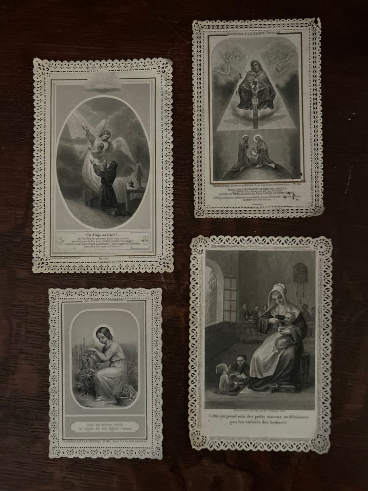 Lot de 4 images pieuses sur papier gaufré-dentelle, 1880!