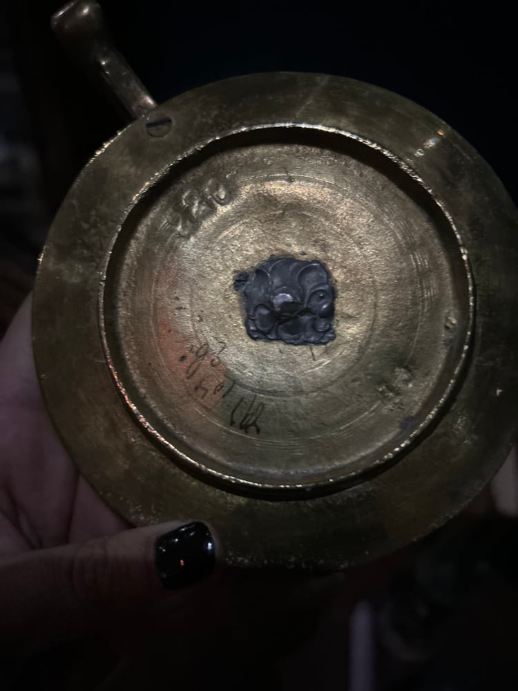 Magnifique bougeoir à main dit « rat de cave », en bronze massif, fin XIXème siècle, signé.
