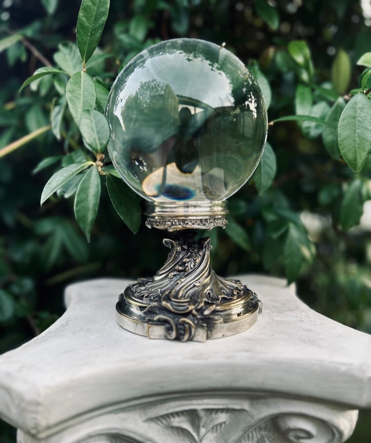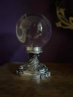 Magnifique boule de cristal de 13cm de diamètre et son support plaqué argent, Art Nouveau