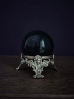 Sublime boule d’obsidienne œil céleste naturelle et support en laiton et cuivre, XIXème siecle