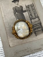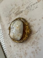 Magnifique camée en coquillage, 19eme siècle.Profil féminin, broche grande taille (4,7x5,5cm)
