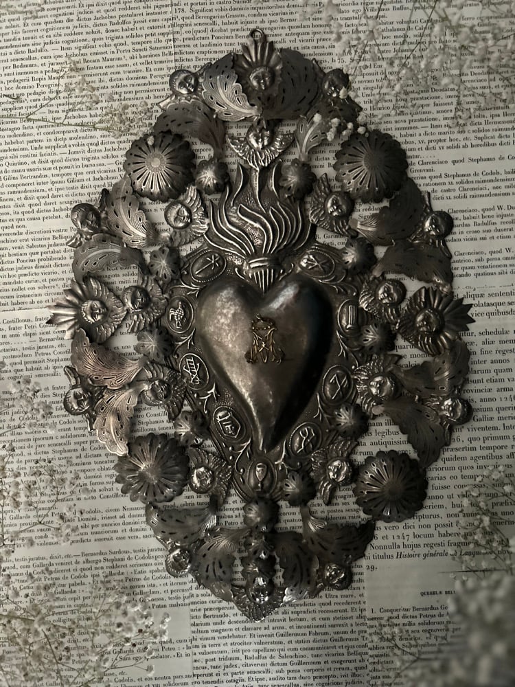 Magnifique et grand coeur sacré, XIXème siècle, Italie. 40x28cm