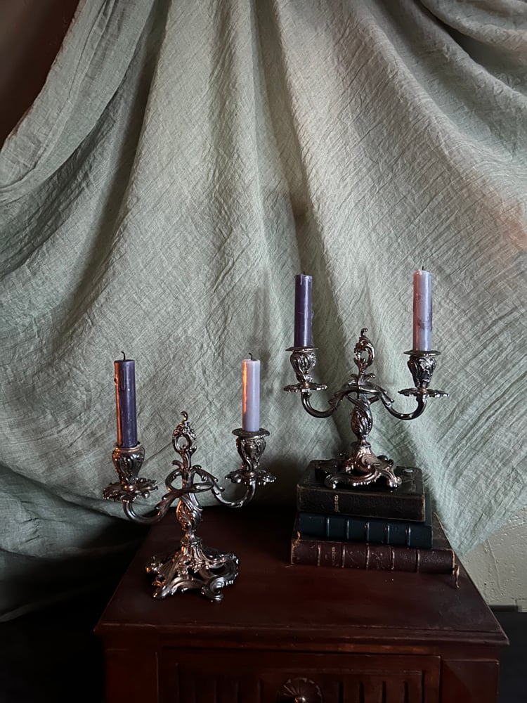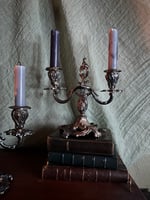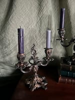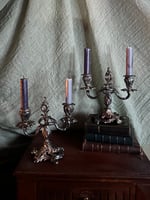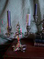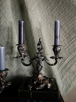 Magnifique paire de bougeoirs en bronze plaqué argent avec une belle patine irisée (mais peut retrouver tout son éclat avec un nettoyage au miror)