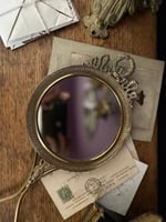Magnifique miroir à main mais qui s’accroche aussi au mur.