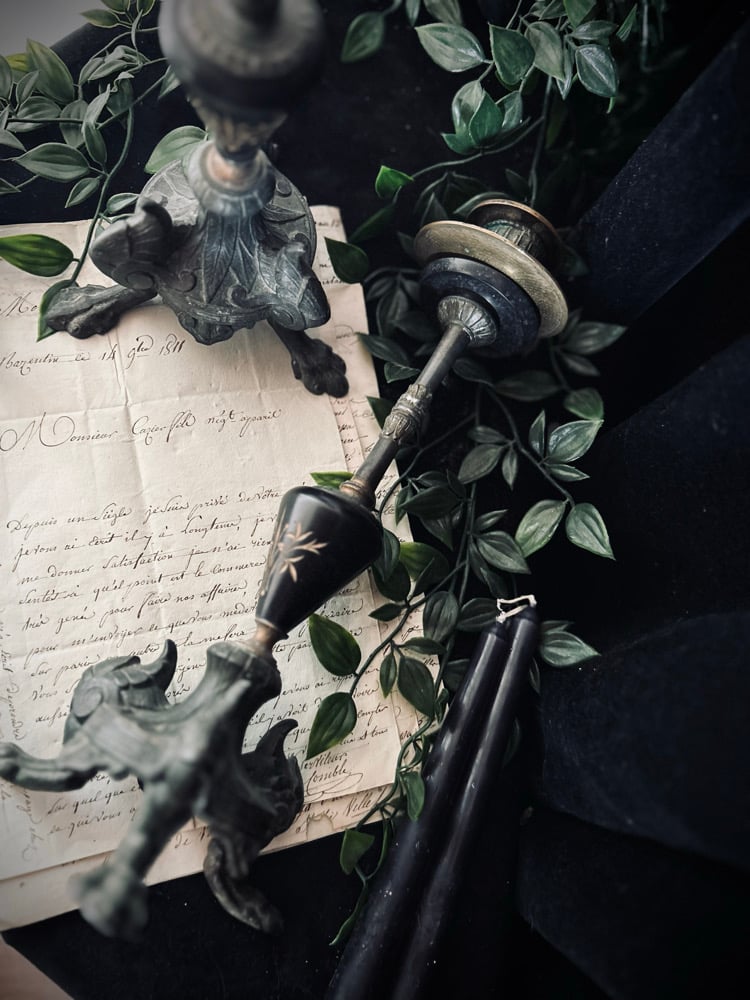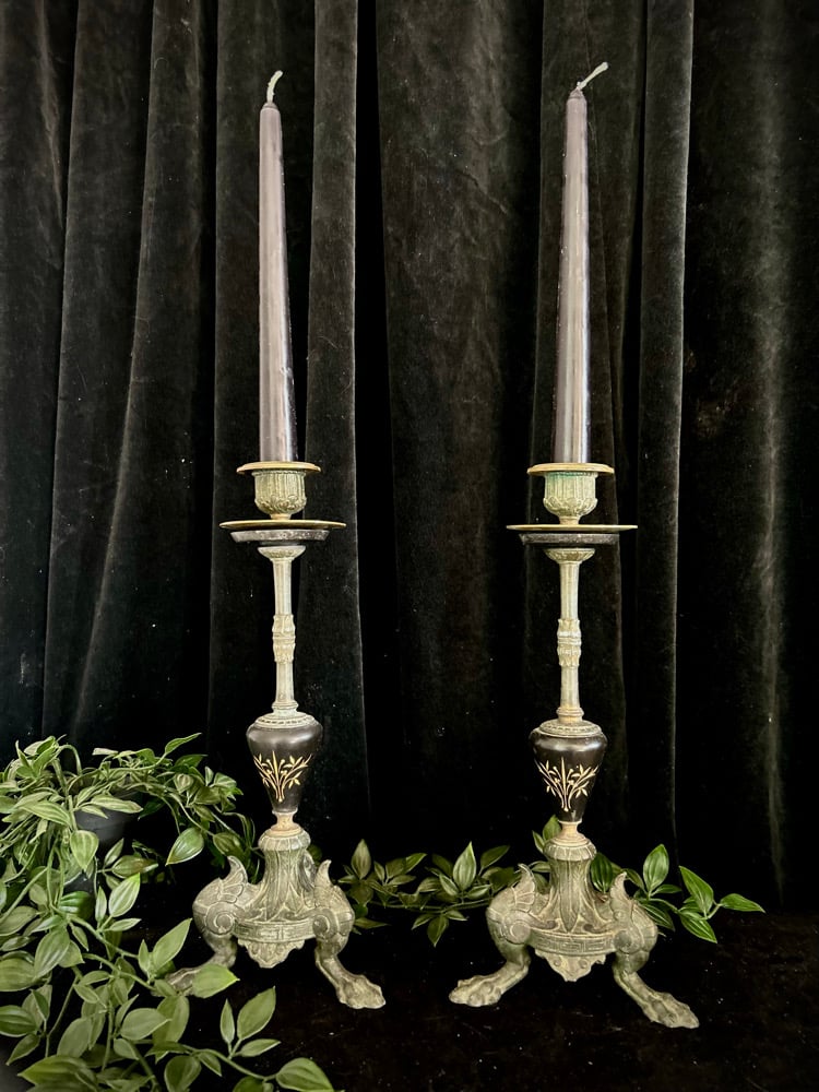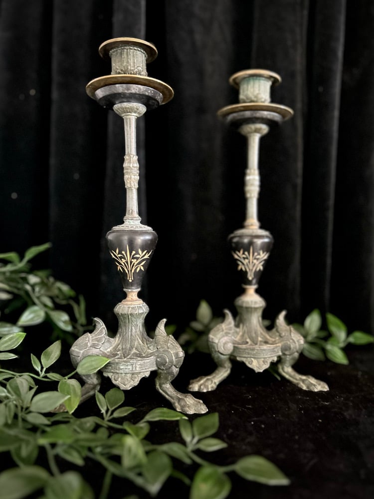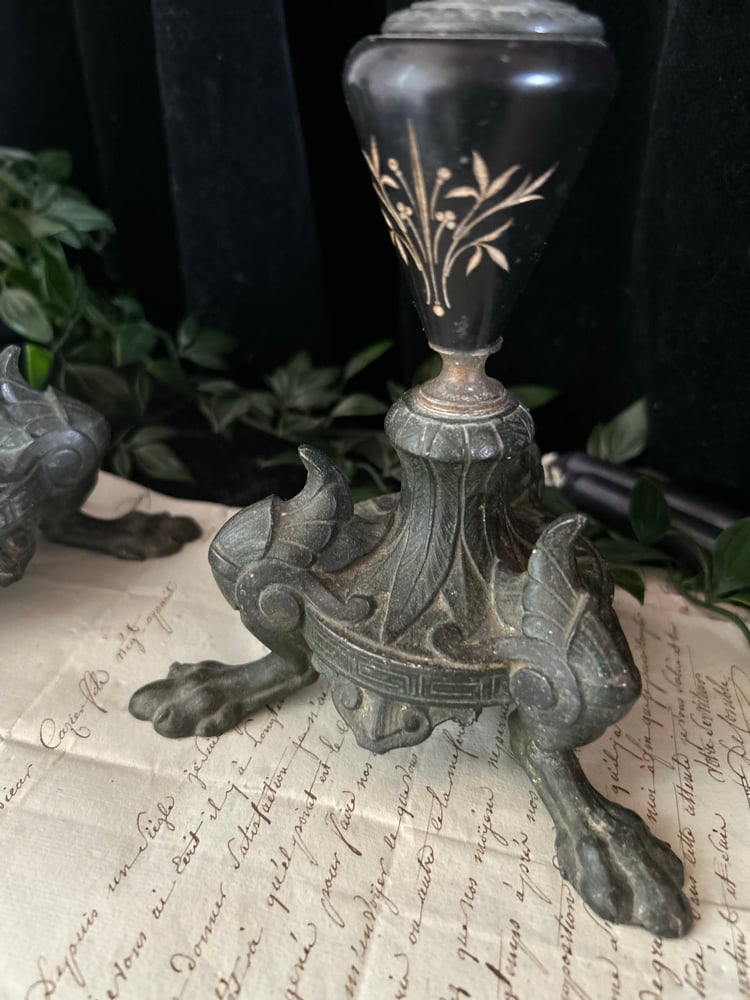 Paire de bougeoirs de style Empire. En cuivre, bronze et ébonite. Fin XIXEME!