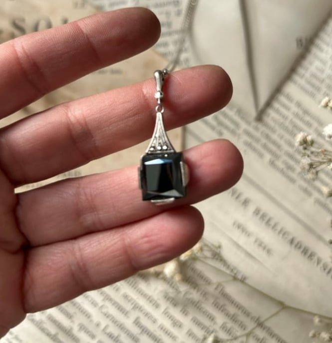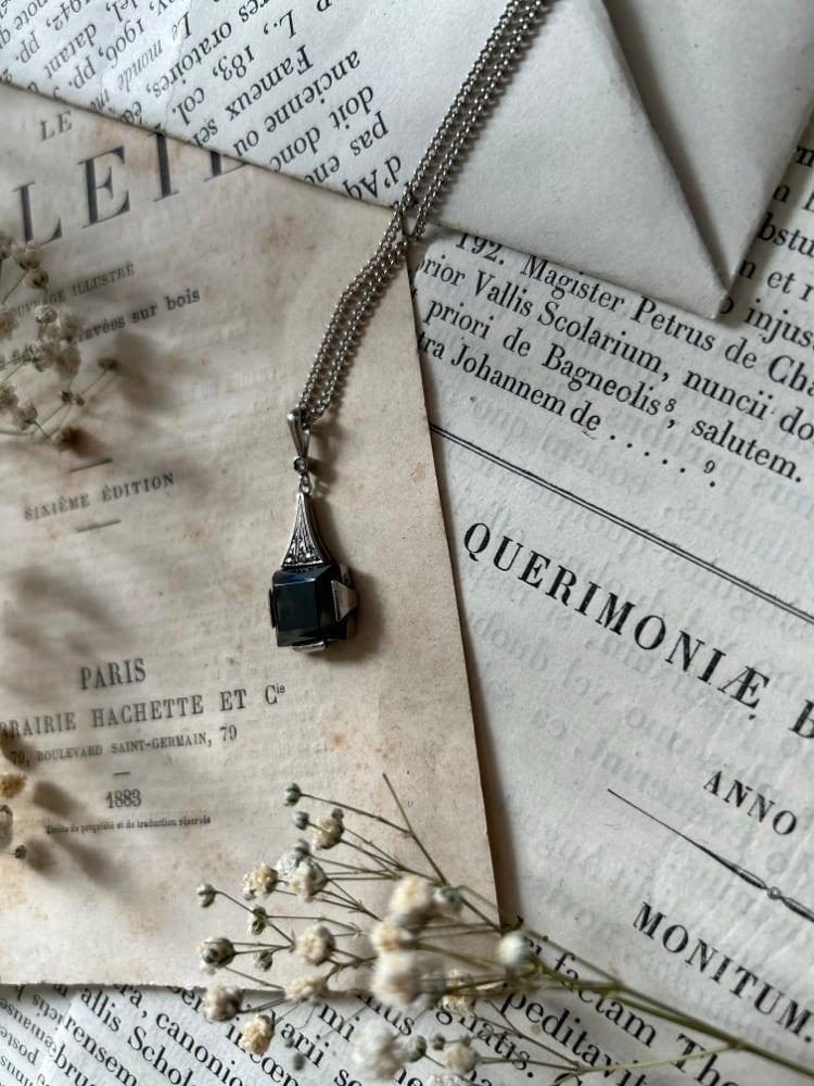 Pendentif en hématite, marcassites et argent massif, époque Art Déco (1910)
