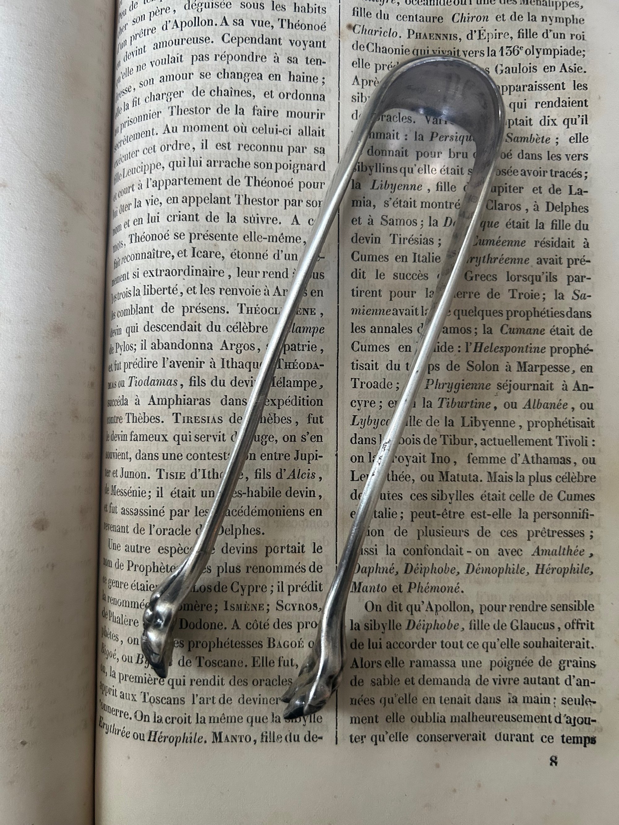 Pince à sucre/ à encens, plaqué argent, à pattes de lion, monogrammé, XIXème s.