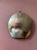 Porte-carte en nacre, cuir et soie bleue, XIXème siècle