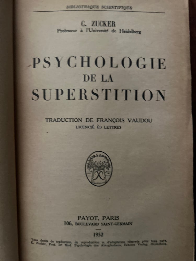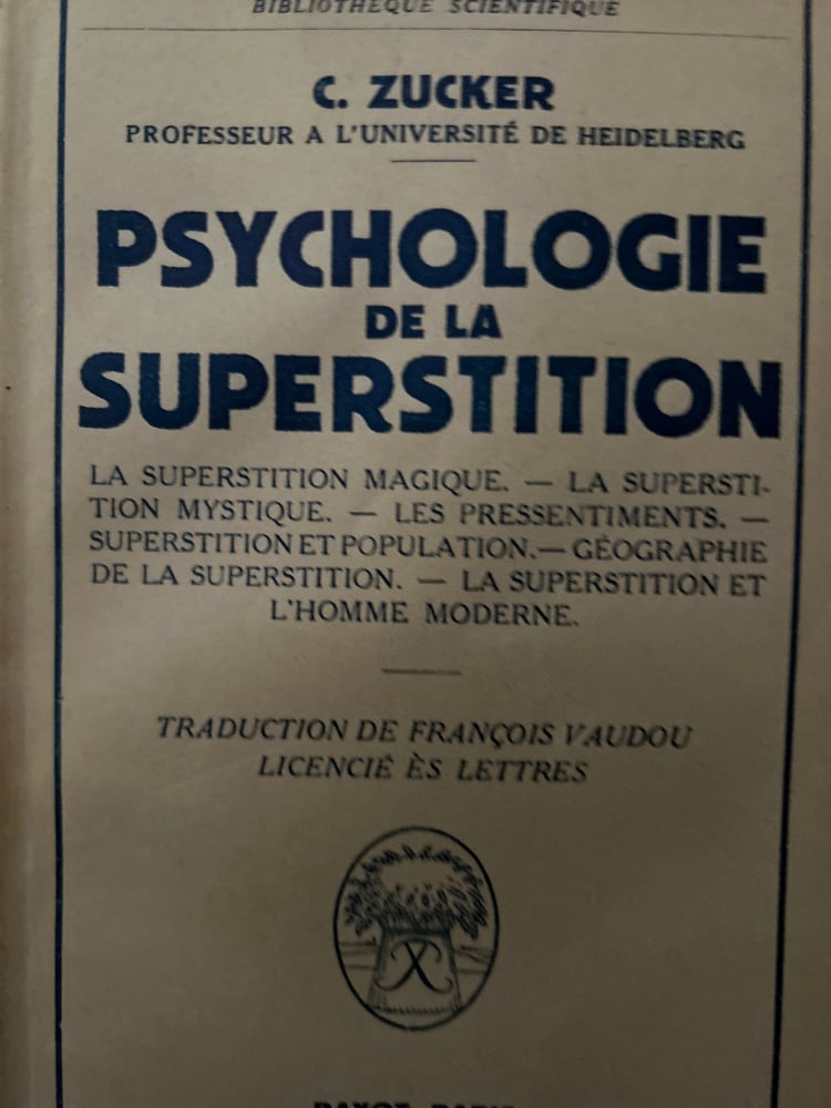 Psychologie de la superstition, de C. Zucker, éditions Payot, 1952.