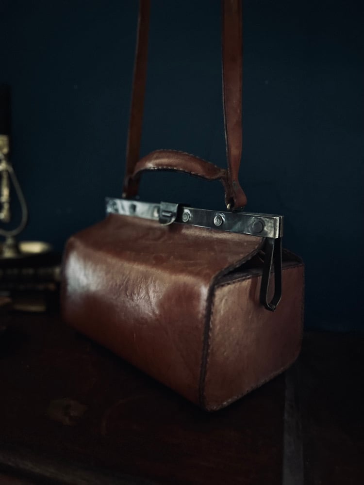 Sac de medecin, cuir épais, ouvrant en tre bon état, lanière réglable