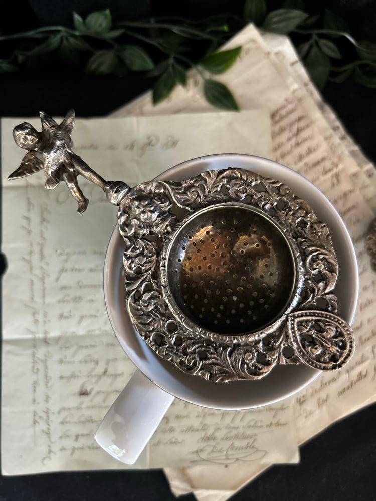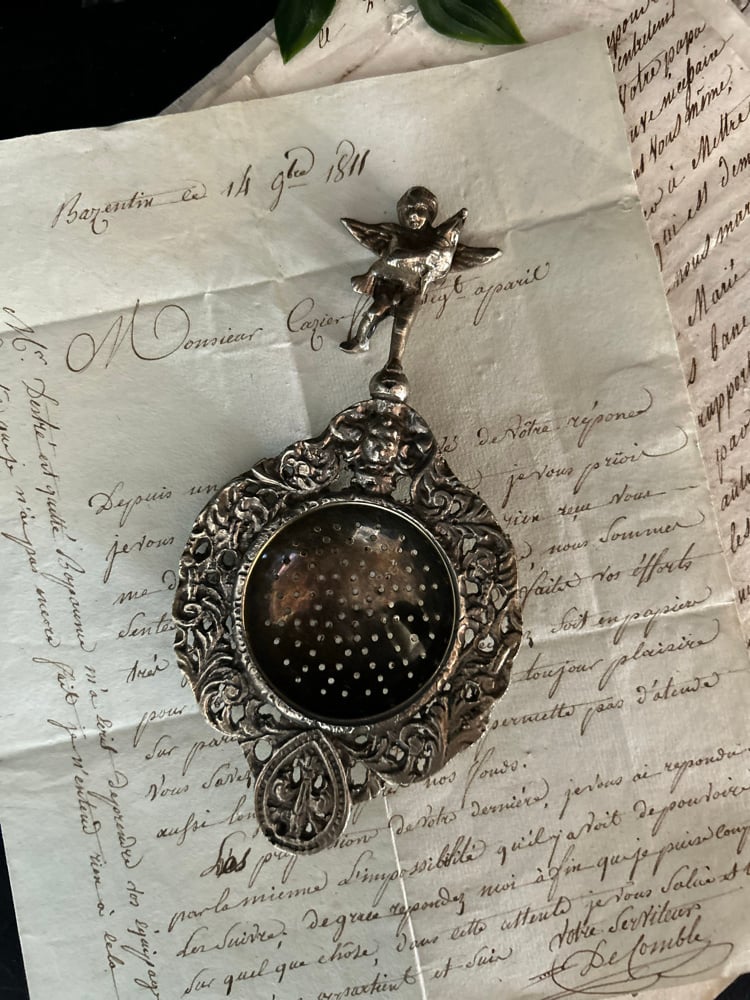 Sublime passe-thé, ange, plaqué argent, XIXème siècle