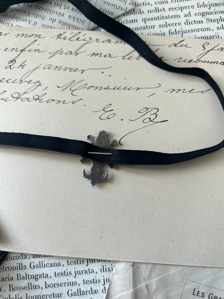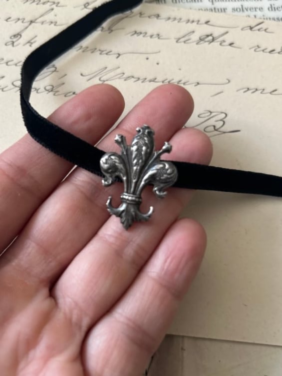 Superbe broche fleur de lys en argent massif poinçonné, mis en ras de cou, XIXème s.