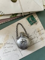 Superbe fiole à châtelaine d’époque Art Nouveau, plaqué argent.