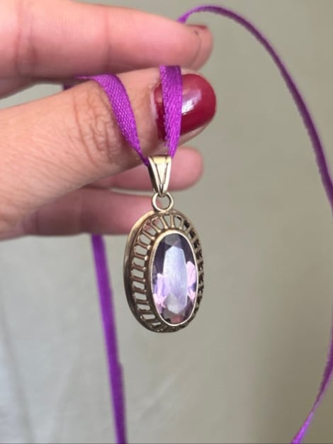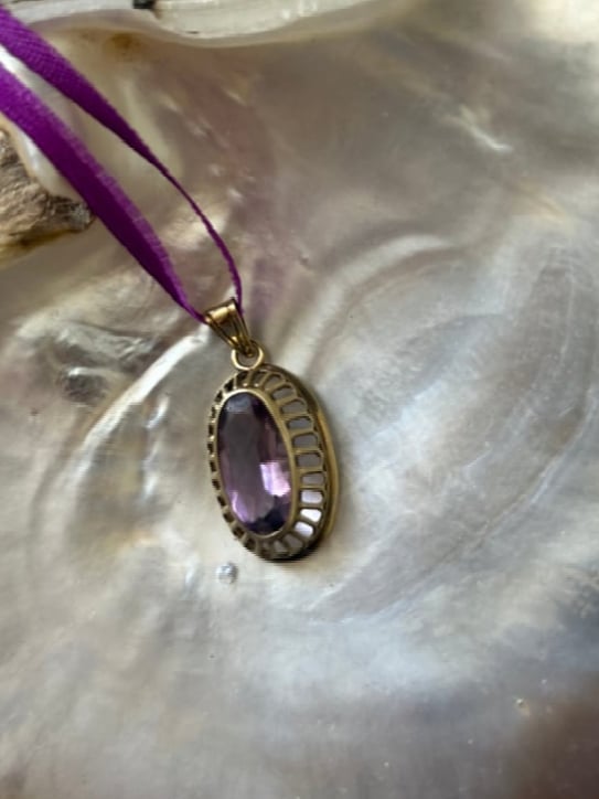 Superbe pendentif en or massif (9 carats) et grande améthyste, début 1900!