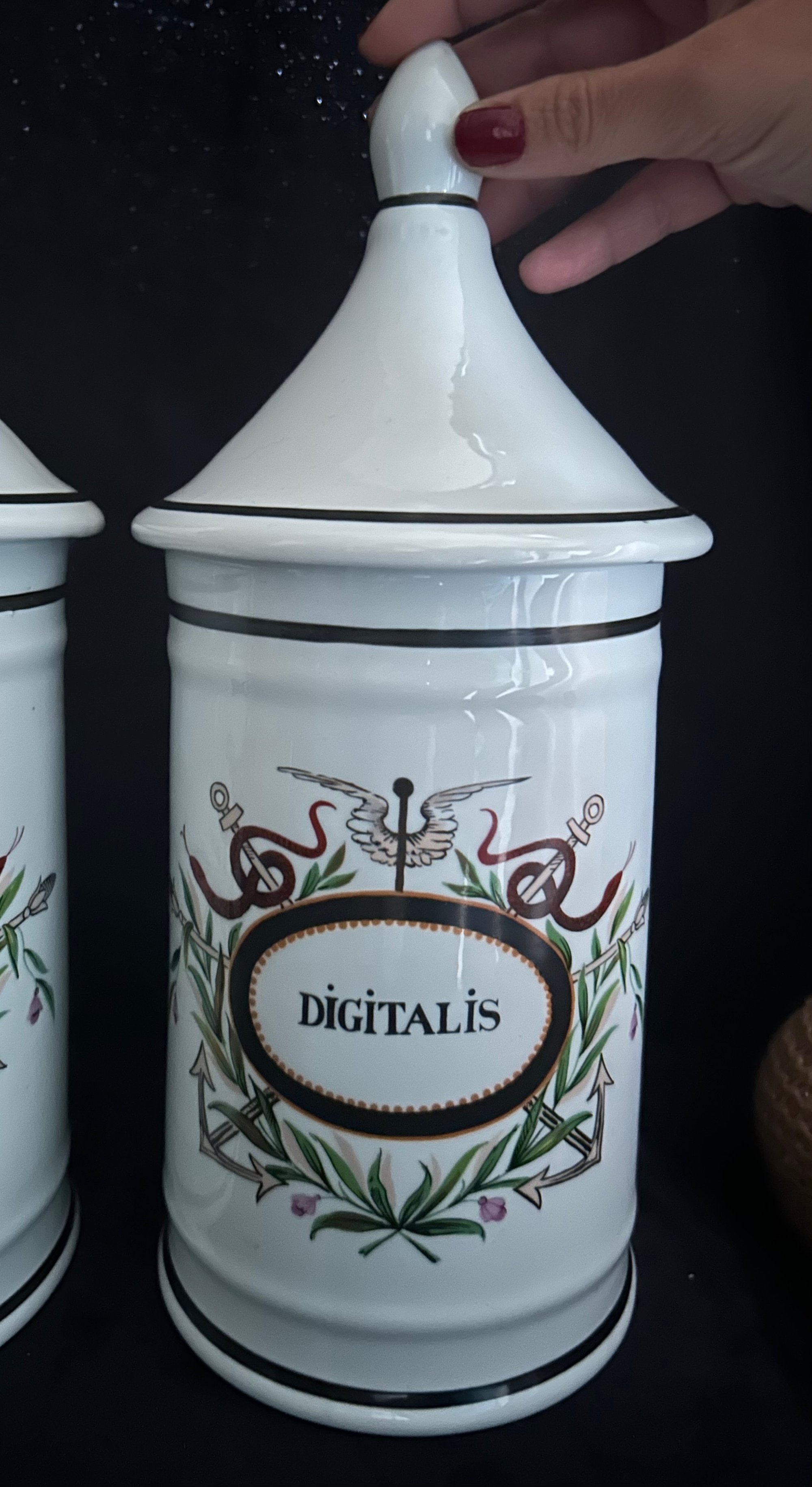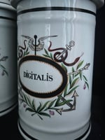 Très grand pot d’apothicaire, de la fin du XIXème siècle, porcelaine peinte: Digitalis